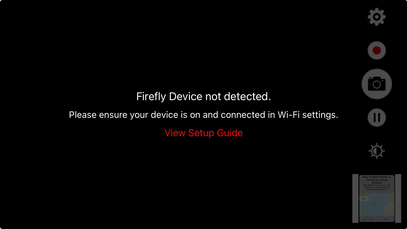 If you are seeing the error “Firefly Device Not detected” in FireflyPro Mobile (shown above) please follow the steps below: